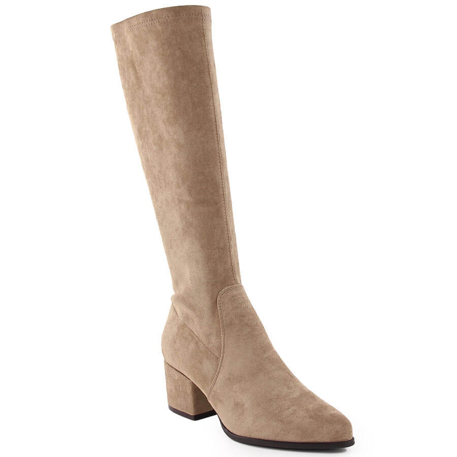 Detalhes: Botas femininas de camurça de salto alto, bege Sergio Leone KZ212