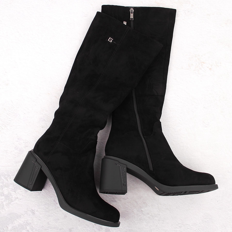 Detalhes: Botas femininas de camurça de salto alto, pretas, Potocki 60314 preto