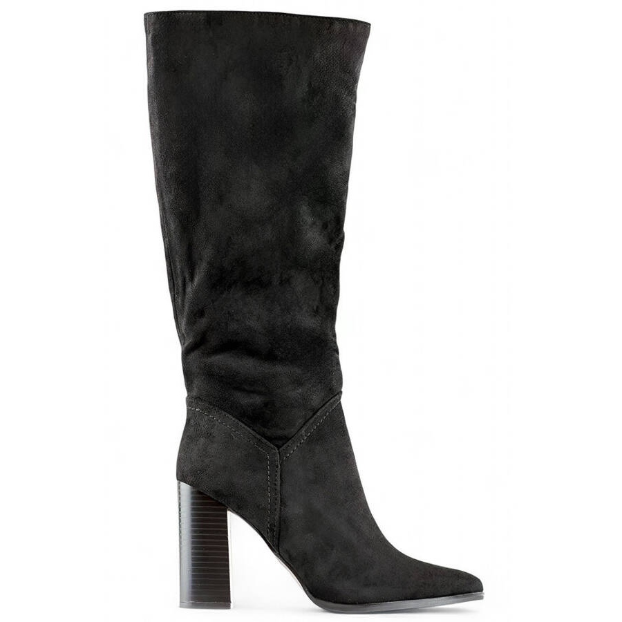 Detalhes: Botas femininas de camurça de salto alto, pretas, X829B preto