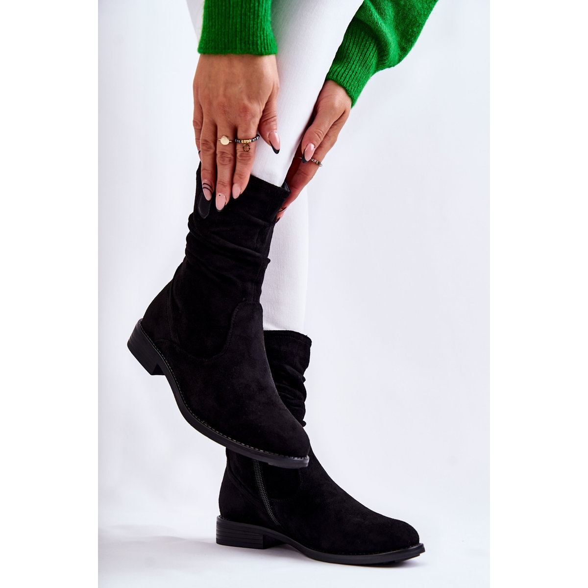 - Modelo: Botas Femininas de Camurça Enrugada Preto Joanne
