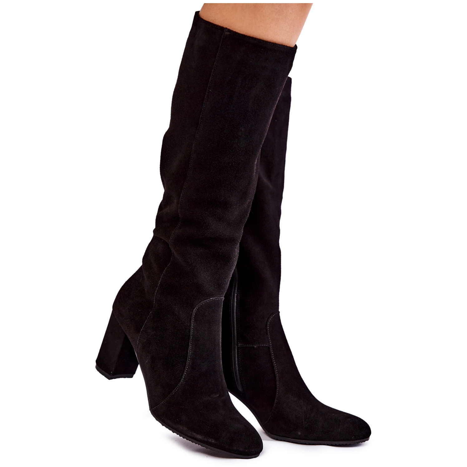 Detalhes: Botas Femininas de Camurça Laura Messi Preto 1415