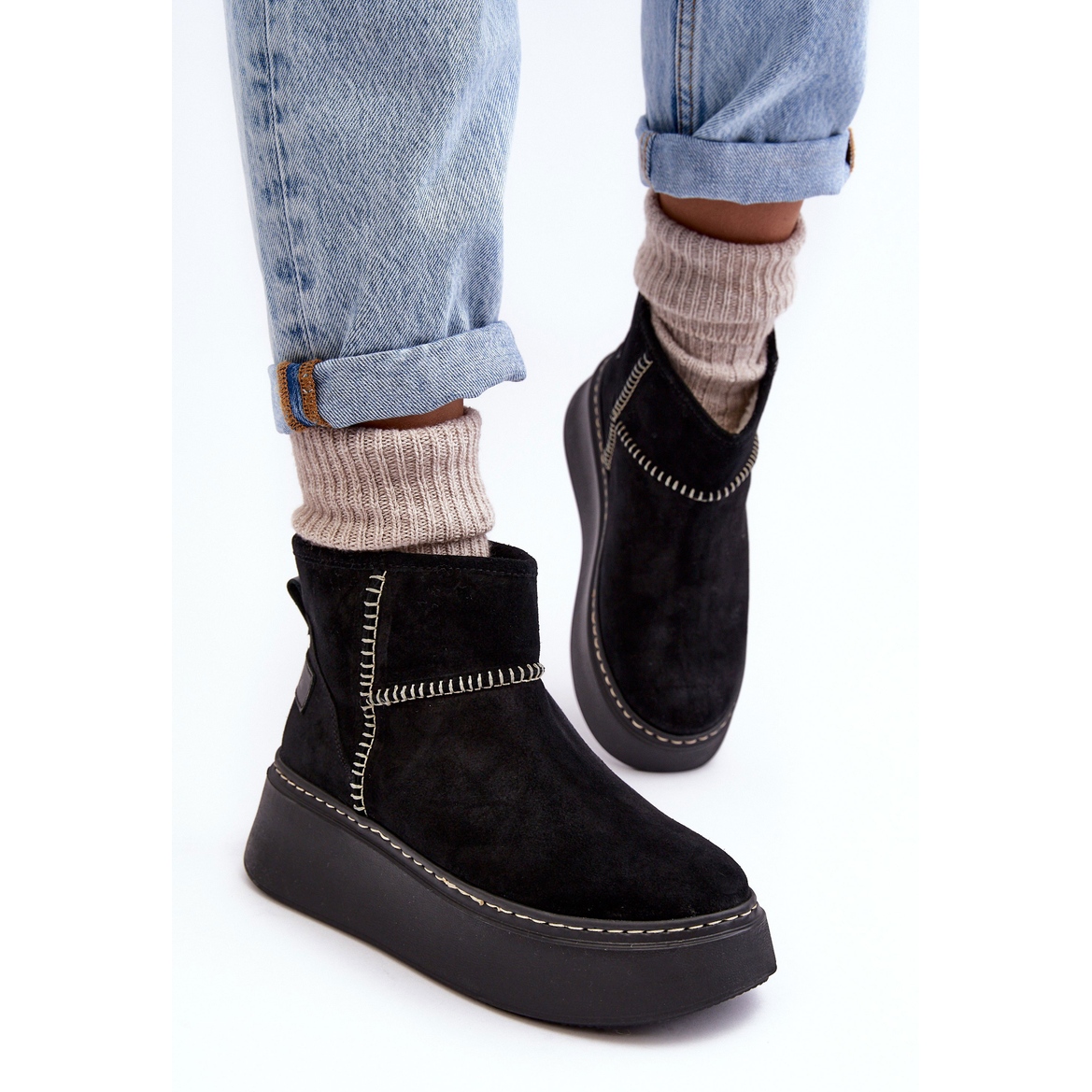Detalhes: Botas femininas de camurça para neve Maciejka 06257-01 pretas preto