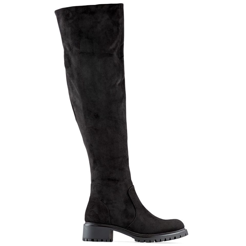 - Modelo: Botas acima do joelho em camurça e sola plana