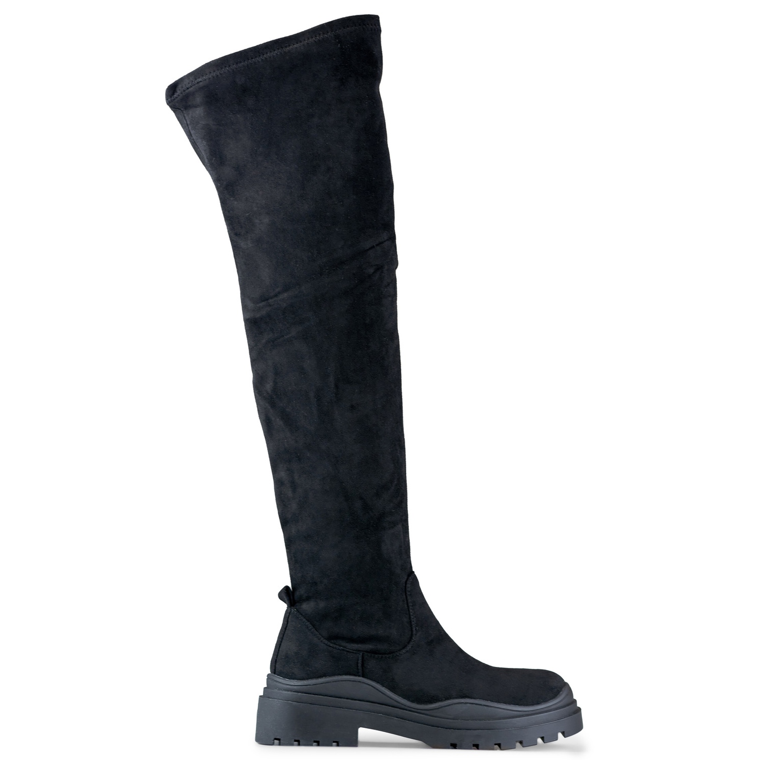 Detalhes: Botas femininas de camurça preta acima do joelho preto