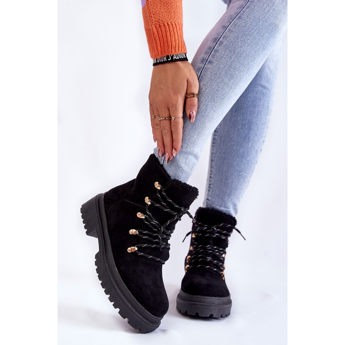 Os botins femininos Black Bellita Suede Trapper são uma combinação de elegância e funcionalidade, perfeitos para os dias frios de outono. Estas botas de design moderno distinguem-se por uma parte superior fechada com zíper na lateral e amarrada na frente, o que as torna não só práticas, mas também elegantes.