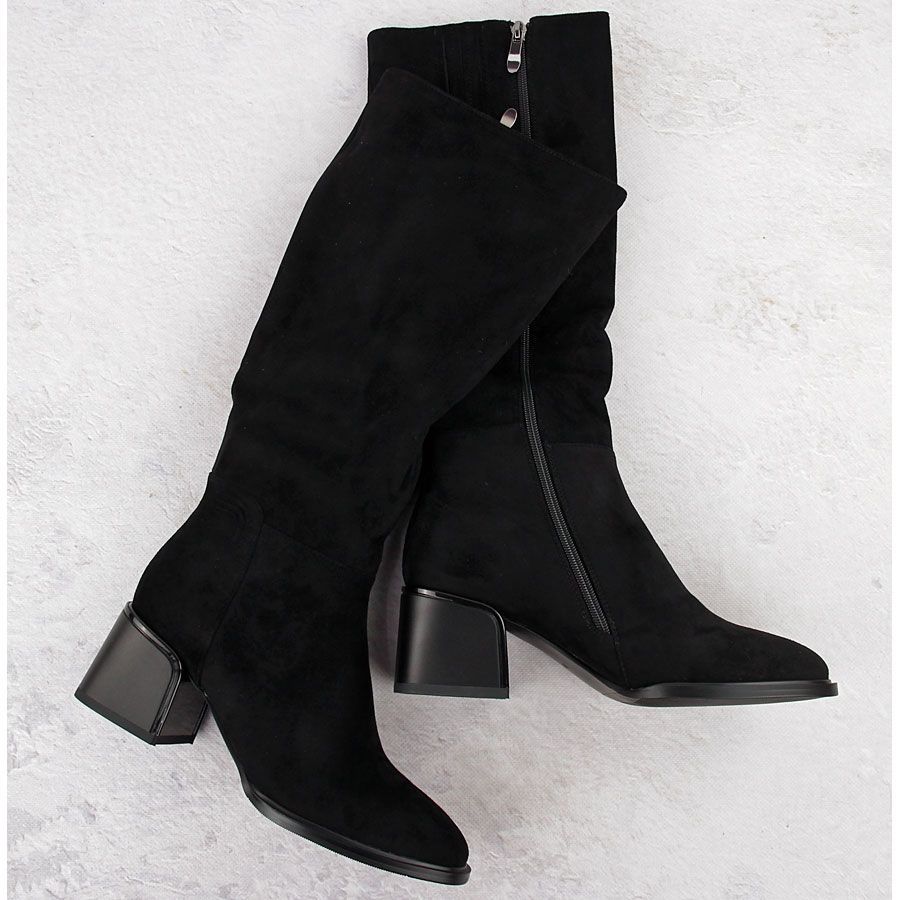 Este modelo tem um nariz redondo e um bloco estável com uma altura de 6 cm, o que aumenta a conveniência do uso, ideal para estilizações diárias e saídas elegantes. As botas estão disponíveis em uma cor preta clássica que corresponde a muitas roupas, e seu corte universal os torna um ótimo complemento para todos os guarda -roupas.