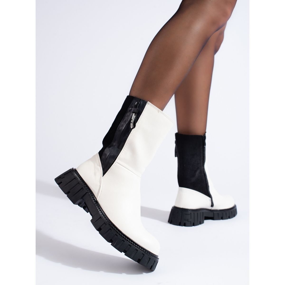 Botas femininas com um alto alto - branco -preto (cor branca dominante)