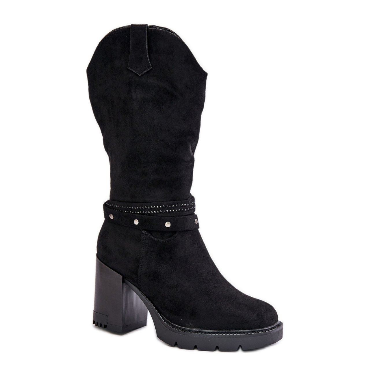 Detalhes: Jezzi Botas femininas de cano médio Preto