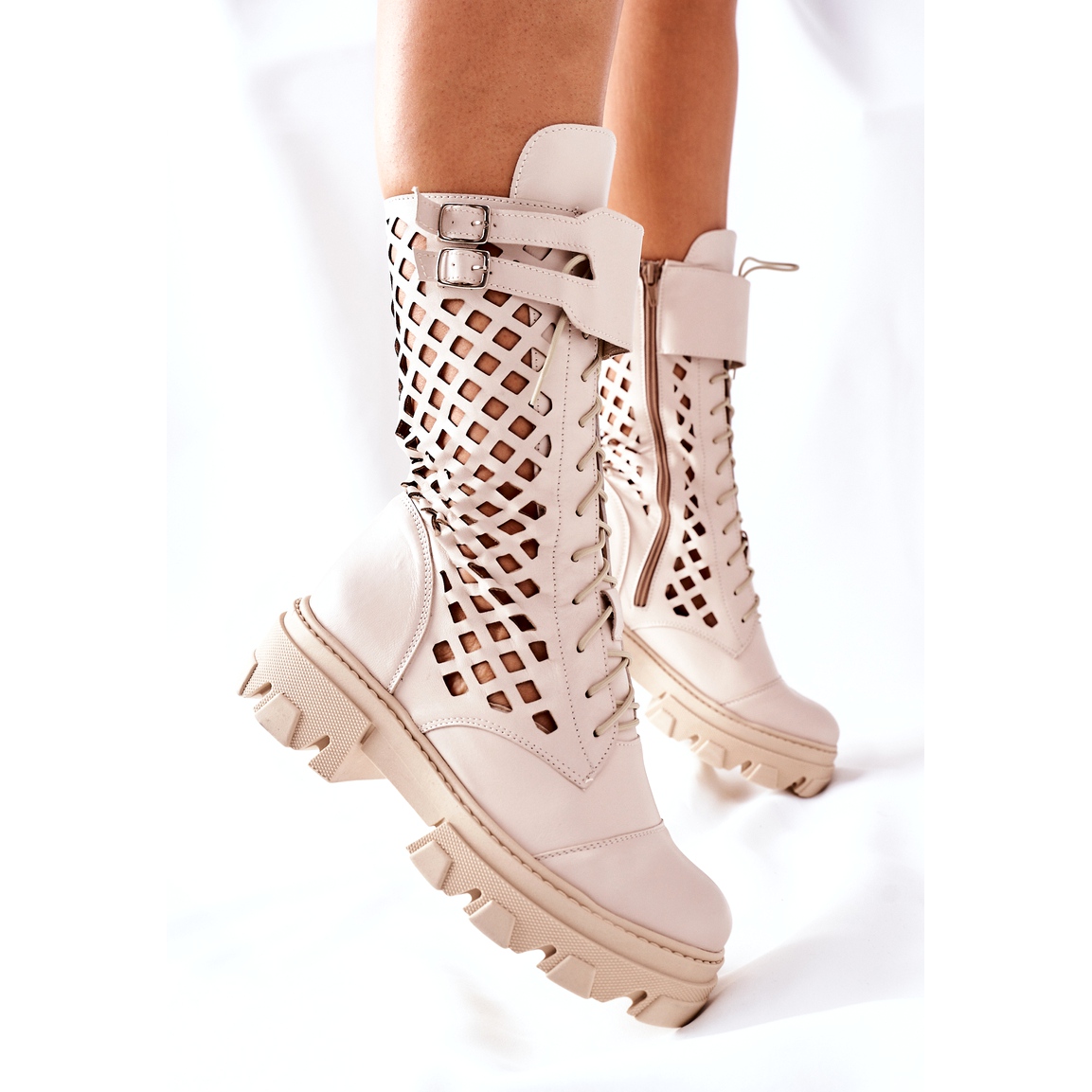 Descubra um estilo forte com os botins femininos em couro PA2 bege com aberturas, conhecidos como Cappuccino. Estas botas exclusivas são a escolha perfeita para mulheres que desejam adicionar carácter e originalidade aos seus estilos. Graças ao cano alto e à sola maciça, estes sapatos não só chamam a atenção, mas também garantem conforto de uso.