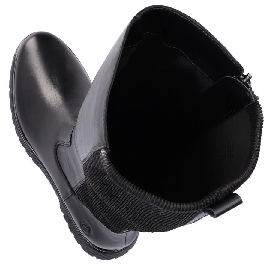 Detalhes: Botas femininas de couro com cano elástico, preto Remonte D1B71-01
