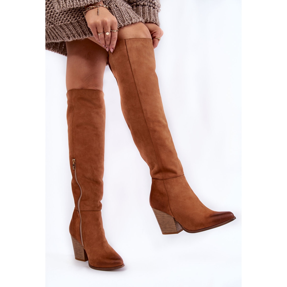Detalhes: Lewski Shoes Botas femininas de couro com coxa alta Lewski 2833 Camel marrom