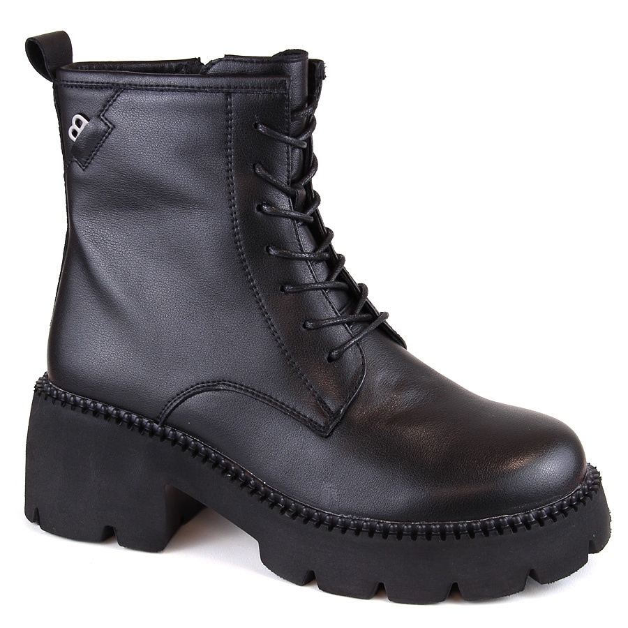 Detalhes: Botas femininas de couro com salto alto e plataforma, isoladas, pretas, T.Sokolski 191 preto