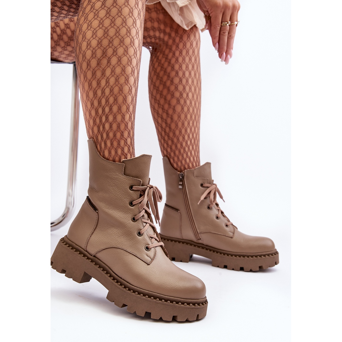 Botas de caminhada para mulheres elegantes e práticas feitas de couro natural - perfeito para dias mais frios da coleção de outono/inverno. Um clássico, para o tornozelo que atinge um corte que combina um zíper e um laço dá o conforto de colocar um certo ajuste, e o isolamento do cobertor de calçados fornece calor, mesmo em manhãs mais frias.