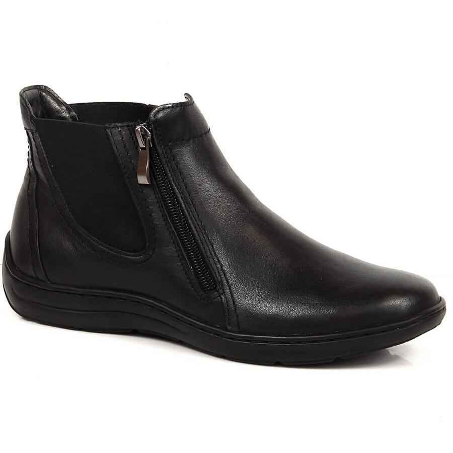 Detalhes: Botas femininas de couro confortáveis com zíperes Łukbut isolados preto