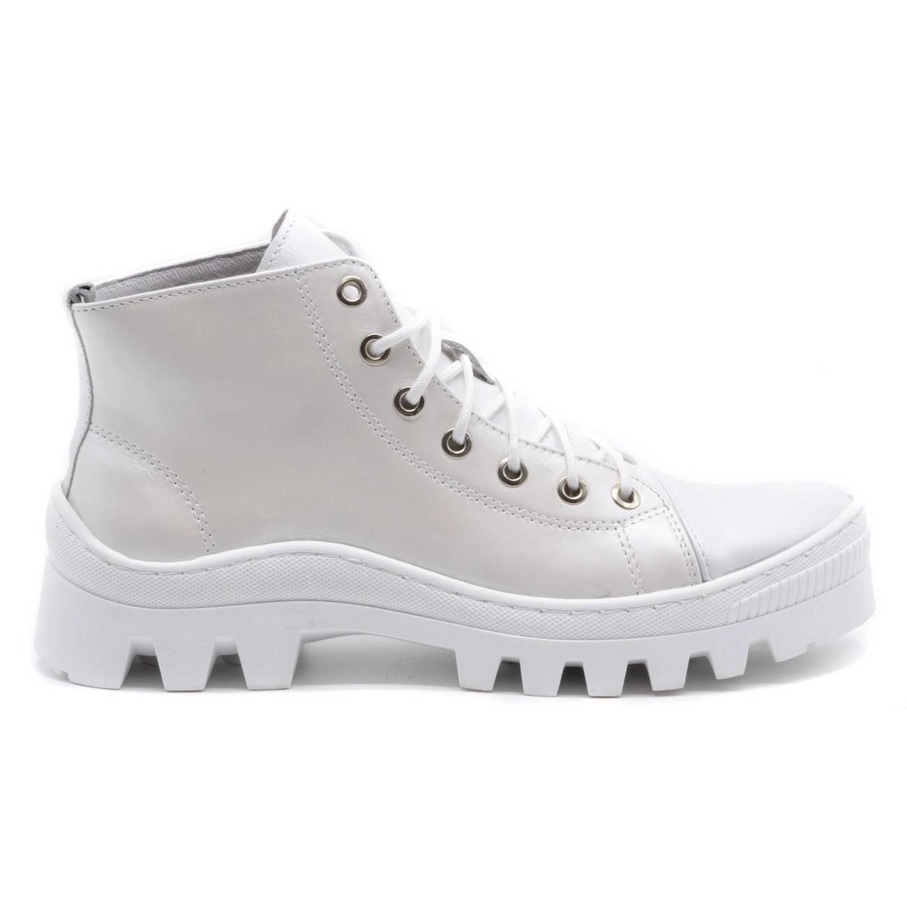 Detalhes: Polbut Botas femininas de couro D1 brancas com parte inferior branca branco