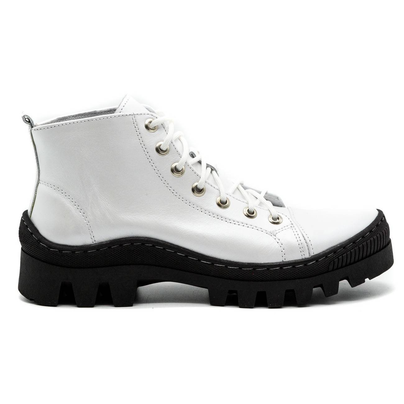 Os botins Polbut brancos com bico redondo caracterizam-se por uma elegância extraordinária e podem animar qualquer estilo. A altura do salto de 3,5 cm garante estabilidade adequada, e o salto em cunha acrescenta alguns centímetros de altura sem sacrificar o conforto.