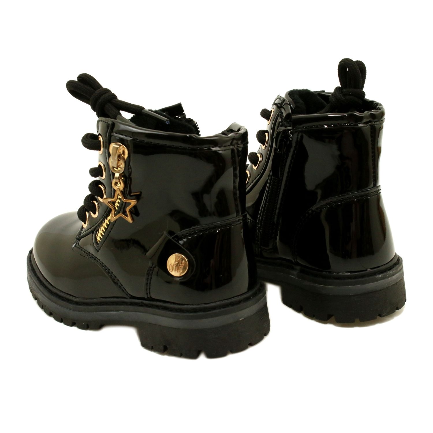 Elegante e feminina Miss Boots em um acabamento envernizado preto com uma estrela de ouro decorativa e um zíper. Isolado com pêlo dentro, com uma sola permanente do termocoat - conveniente e fácil de usar, mesmo para o mais novo.