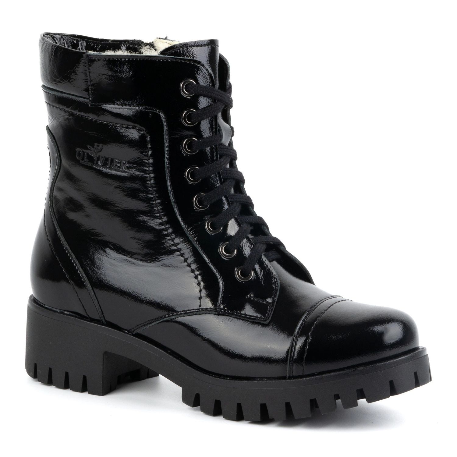 Olivier Olivier Botas femininas de couro, isoladas, 272BB, couro envernizado preto
