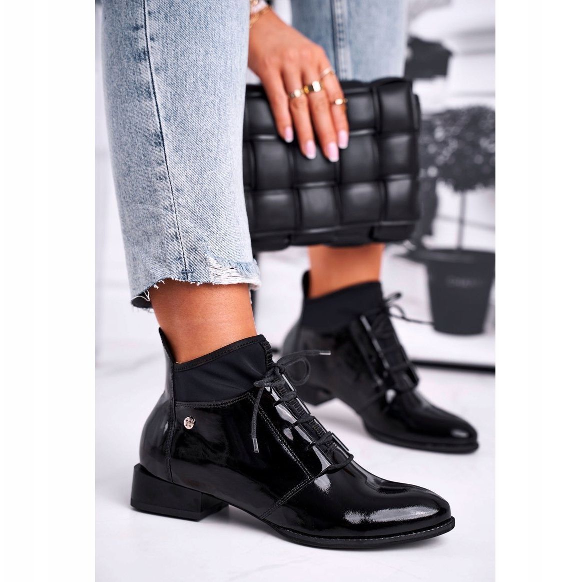 Descubra um estilo único com os botins femininos de couro Maciejka na cor preta (modelo 04744-01). Estes sapatos extremamente elegantes combinam modernidade e estilo clássico, distinguindo-se pelo seu design único e acabamento de alta qualidade. Graças à utilização de vários tipos de couro com diferentes texturas, as botas chamam a atenção e complementam perfeitamente vários estilos.