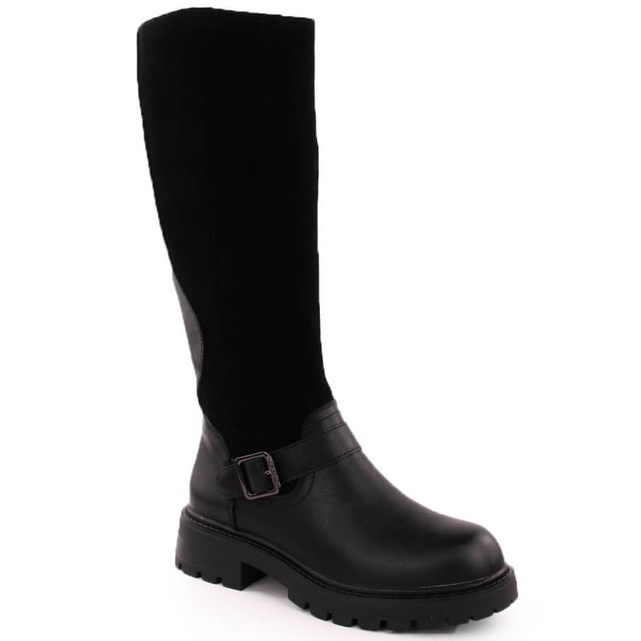 A parte superior com uma altura de cerca de 37 cm chega ao joelho, e o nariz redondo adiciona uma aparência clássica. Perfeito para estilizações de outono ou inverno, adicionando elegância a todas as roupas. Uma vantagem adicional é a costurada no controle deslizante, o que facilita a instalação e a remoção dos cossacos, além de revestimento isolado e uma agradável inserção de pêlo que proporciona calor e conforto, mesmo em dias frios.