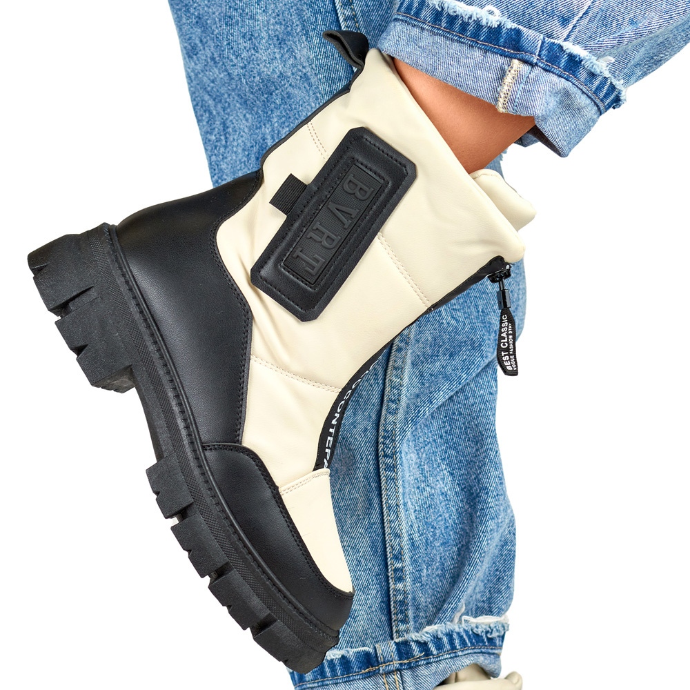 Botas de neve femininas bege em uma sola preta - estilo e conforto para dias mais frios