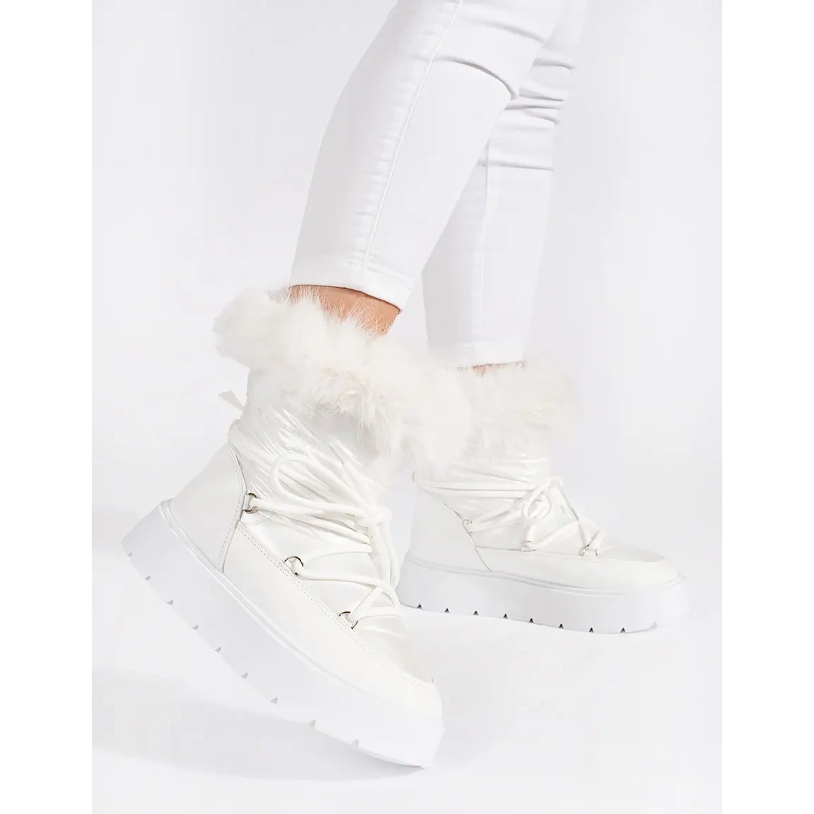 Detalhes: Botas femininas de neve brancas com pele e sola grossa branco