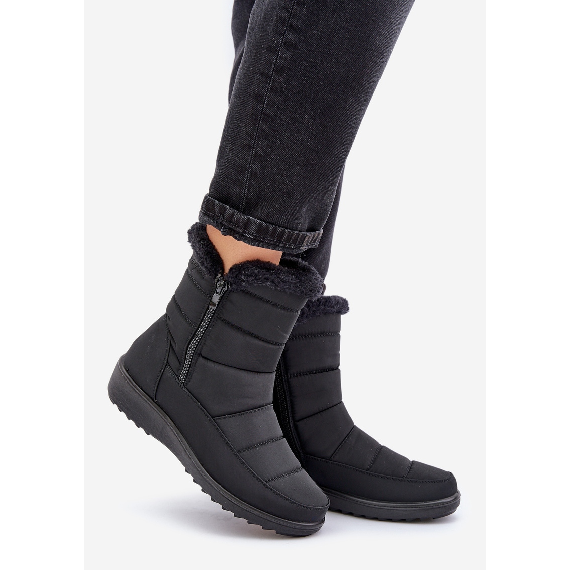 Detalhes: Botas femininas de neve com zíper e pele, pretas preto