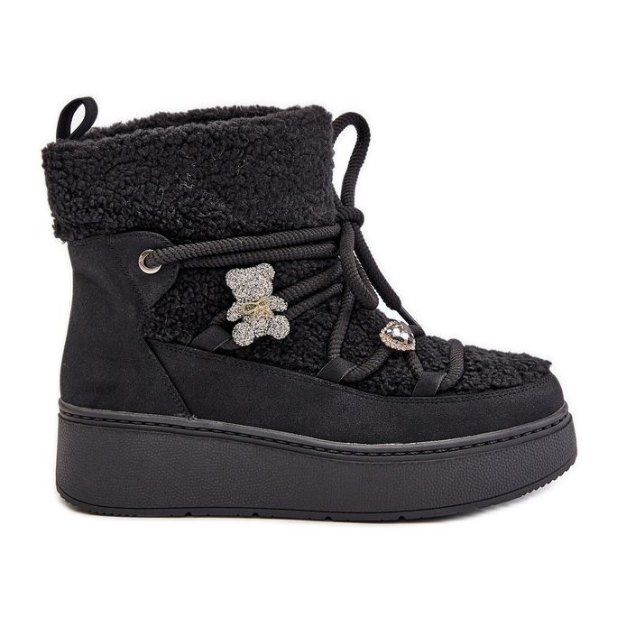 Detalhes: Botas femininas de neve de pele de carneiro Almatiza pretas com alfinetes e pele preto