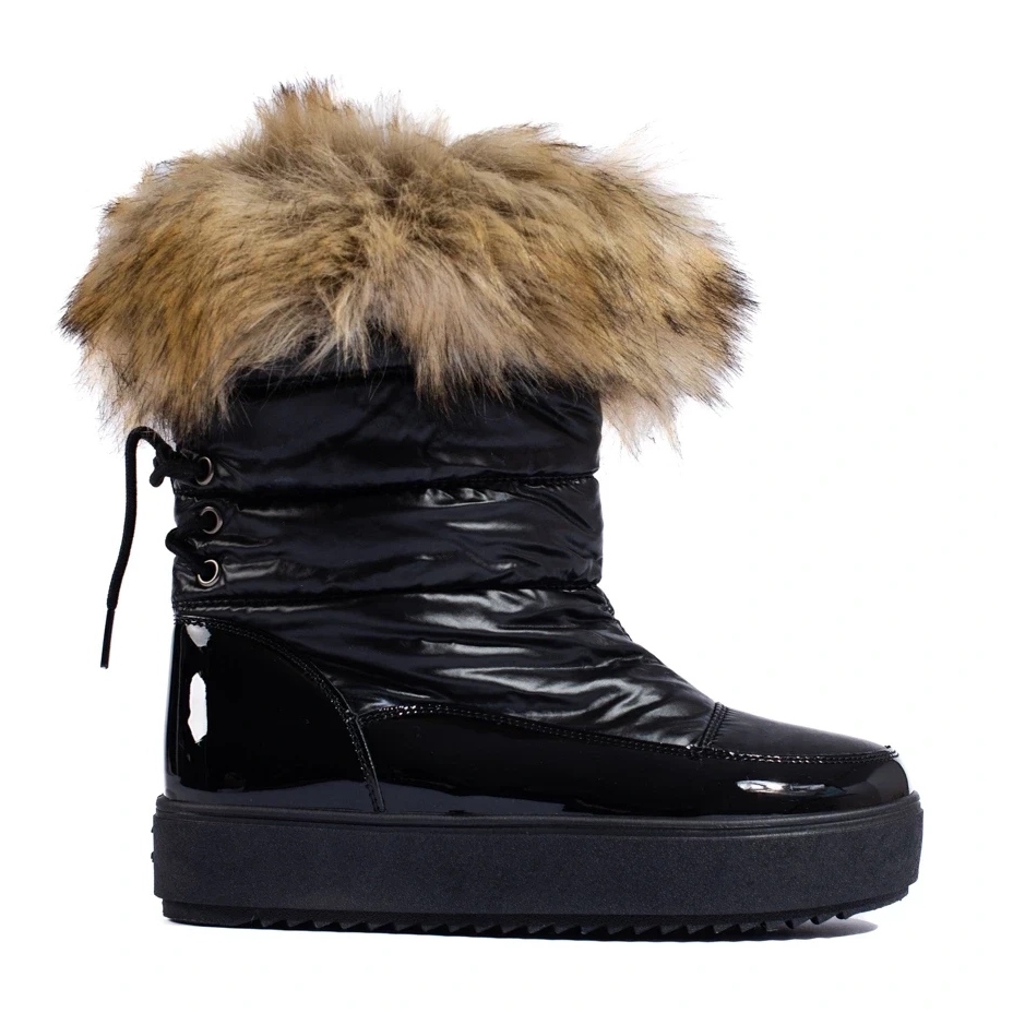 Detalhes: Botas femininas de neve pretas Shelovet com pele preto