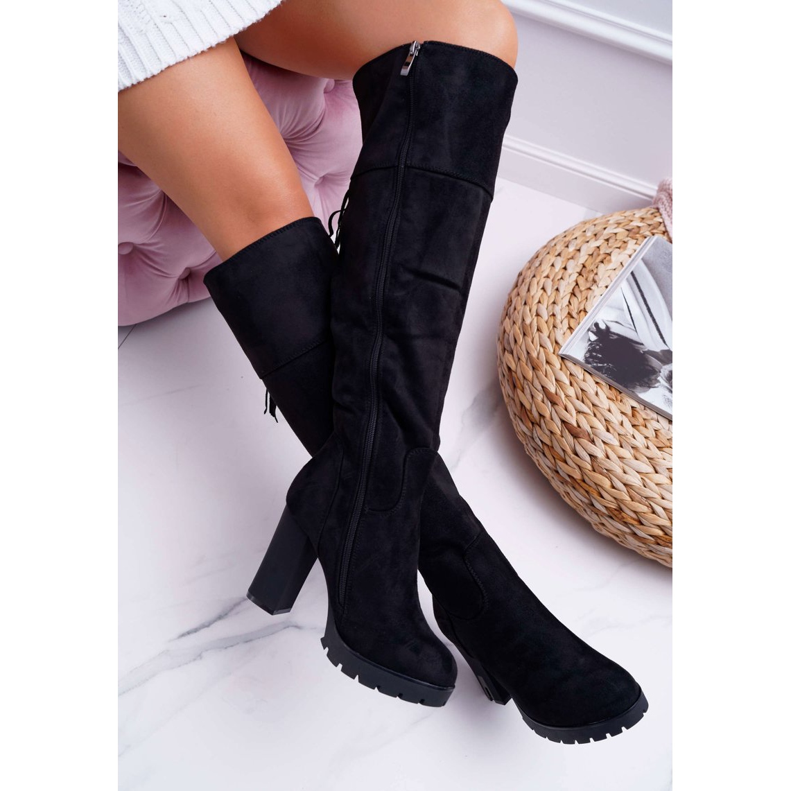 EVE EVE Botas femininas de salto alto camurça velkor quente preto