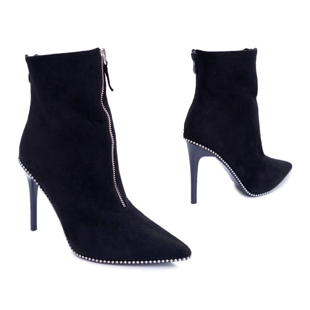 A coleção KeeShoes apresenta na sua oferta os botins Suzy pretos, que são a personificação das tendências contemporâneas. A altura superior é de perfeitos 13,5 cm, o que os faz combinar tanto com calças, como com vestidos e saias. O salto acima de 10 cm confere magreza e elegância à silhueta. Esta é uma grande oportunidade para todos os amantes do salto alto.