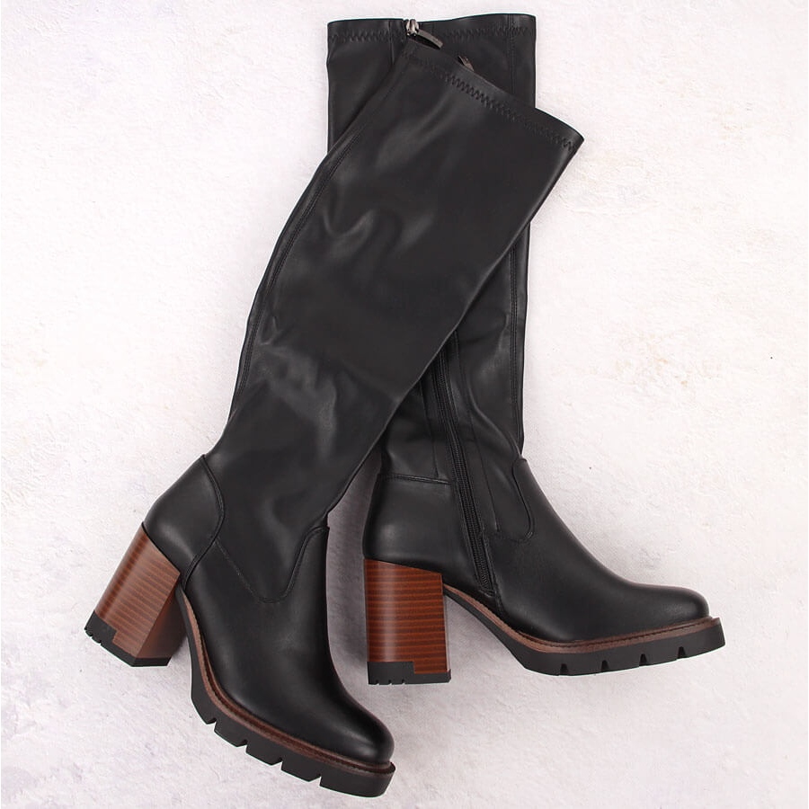 Potocki Botas femininas de salto alto e plataforma, elásticas, isoladas, pretas Potocki 12246 preto