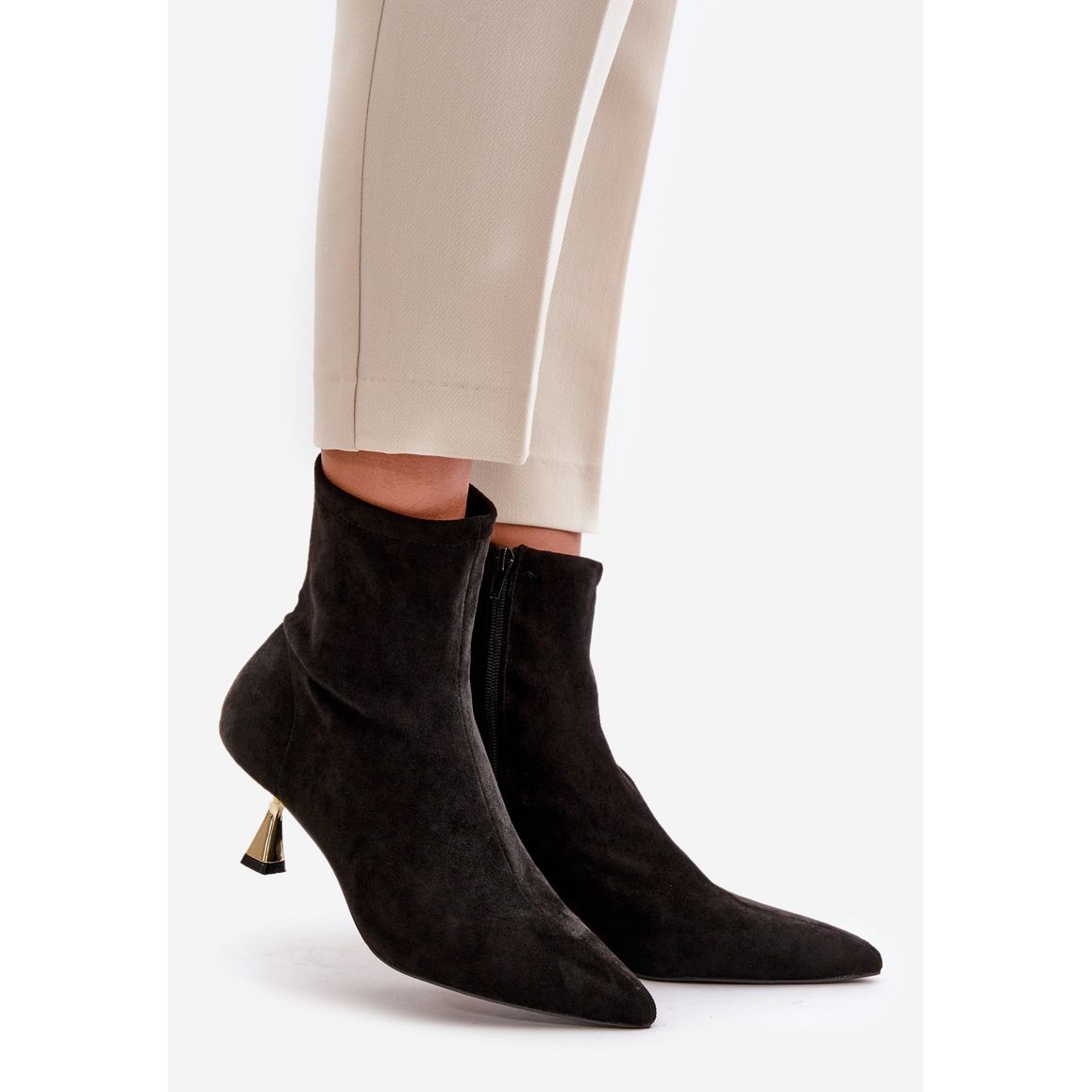 Detalhes: Botas femininas de salto alto em camurça ecológica com bico fino, pretas Irithare preto