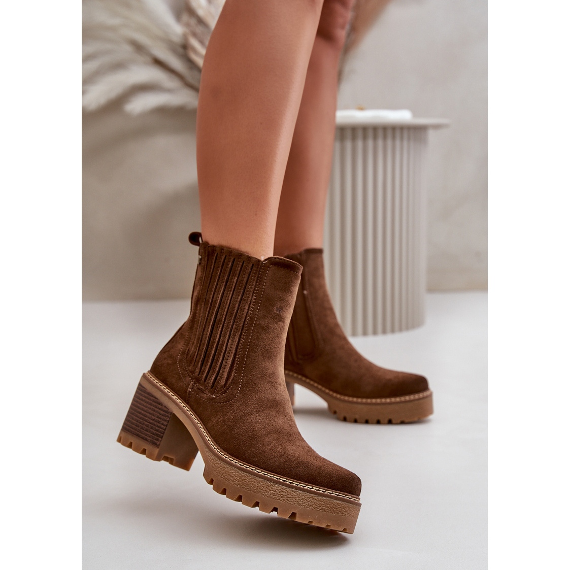 Descubra o incrível conforto e estilo, graças às botas femininas no bar Nevitas. Feito de camurça ecológica de alta qualidade, essas botas marrons escuras são a escolha perfeita para os dias mais frios do outono e do inverno. Um salto estável na forma de um posto de 7 cm de altura oferece não apenas uma aparência elegante, mas também a estabilidade ao usar.
