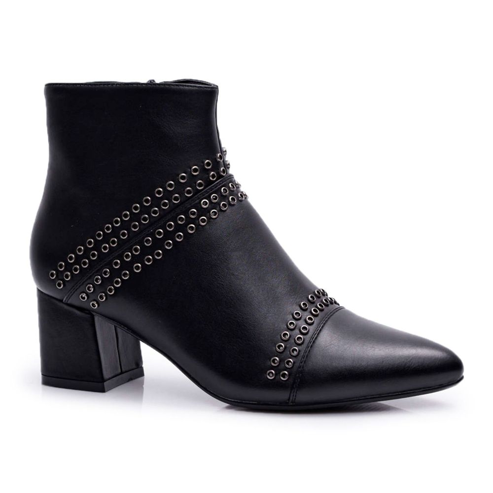 Detalhes: PS1 Botas femininas de salto alto em spitz com rebites Black Primma preto