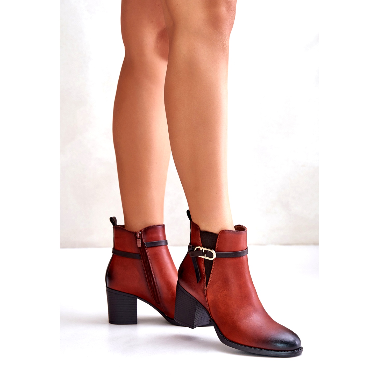 Essas botas foram cuidadosamente feitas de couro ecológico de alta qualidade, o que as torna uma escolha ideal para pessoas que se preocupam com o meio ambiente. O interior isolado da lâmina de calçados fornece calor, o que a torna uma ótima opção para dias mais frios. Situado em um salto estável na forma de um poste de 7 cm de altura, as botas oferecem conforto, mesmo com uso mais longo.