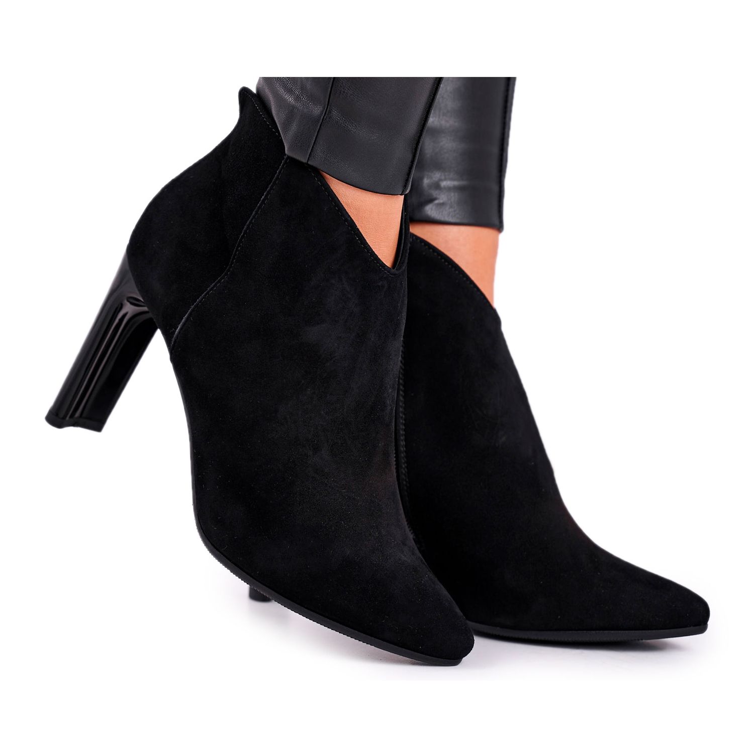 Descubra estilo e conforto extraordinários graças aos botins femininos de salto alto Laura Messi na elegante cor preta. Estas botas são uma combinação perfeita de modernidade e estilo clássico que vão ao encontro das necessidades de cada mulher. Confeccionado em couro camurça de alta qualidade, a parte superior do calçado garante durabilidade e elegância, e a palmilha isolada em manta torna-o perfeito para os dias mais frios.