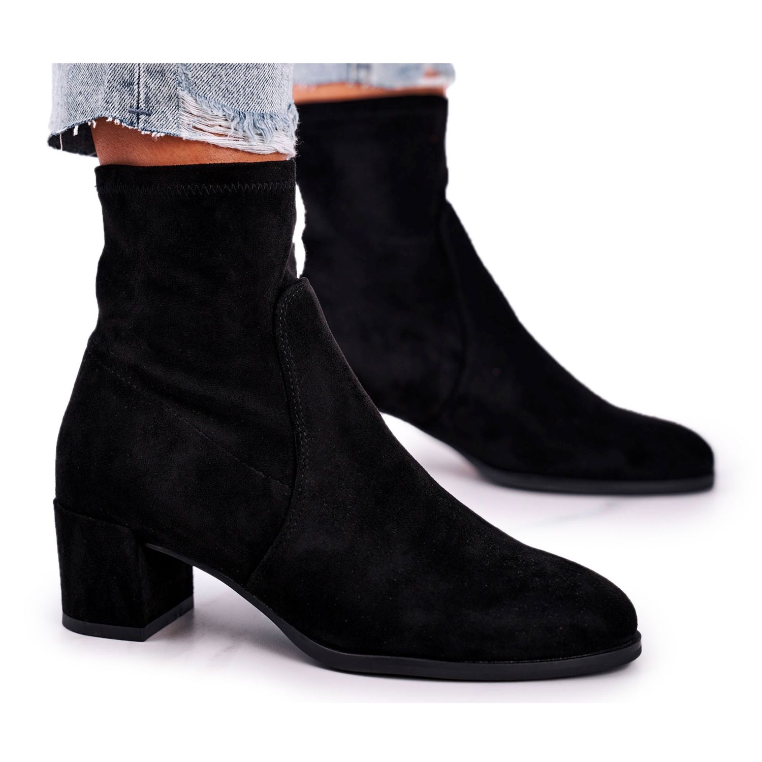 As botas femininas de salto alto Sergio Leone pretas BT151 são a escolha perfeita para os dias de outono, aliando estilo e conforto. Estes elegantes sapatos caracterizam-se por um delicado salto de 5 cm de altura que levanta subtilmente a silhueta, tornando-a mais esbelta. Feitos de couro ecológico preto de alta qualidade, a superfície de camurça confere-lhes uma aparência luxuosa.