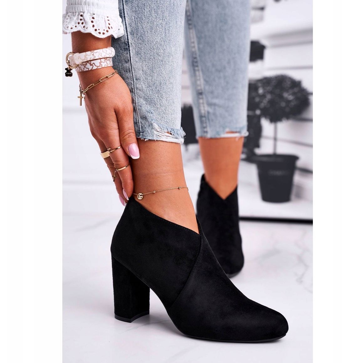 As botas são confeccionadas em couro camurça ecológico de alta qualidade na elegante cor preta, o que lhes confere elegância e versatilidade. A biqueira redonda e o salto bloco de 8,5 cm tornam os sapatos não só estéticos, mas também estáveis e confortáveis de usar. O fechamento com zíper garante fácil colocação e retirada, o que é extremamente prático no uso diário.