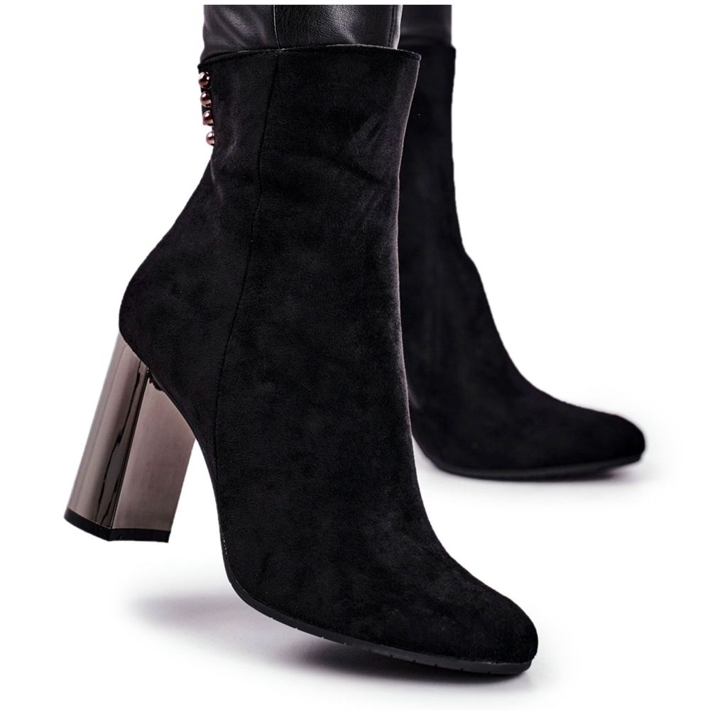 Com altura superior de 15,5 cm, estas botas vão realçar perfeitamente as suas pernas, e a sua elegante cor preta faz com que combinem perfeitamente com uma variedade de looks: desde jeans a vestidos arejados. Também vale a pena prestar atenção ao detalhe da moda em forma de strass, que acrescenta um pouco de personalidade a eles.
