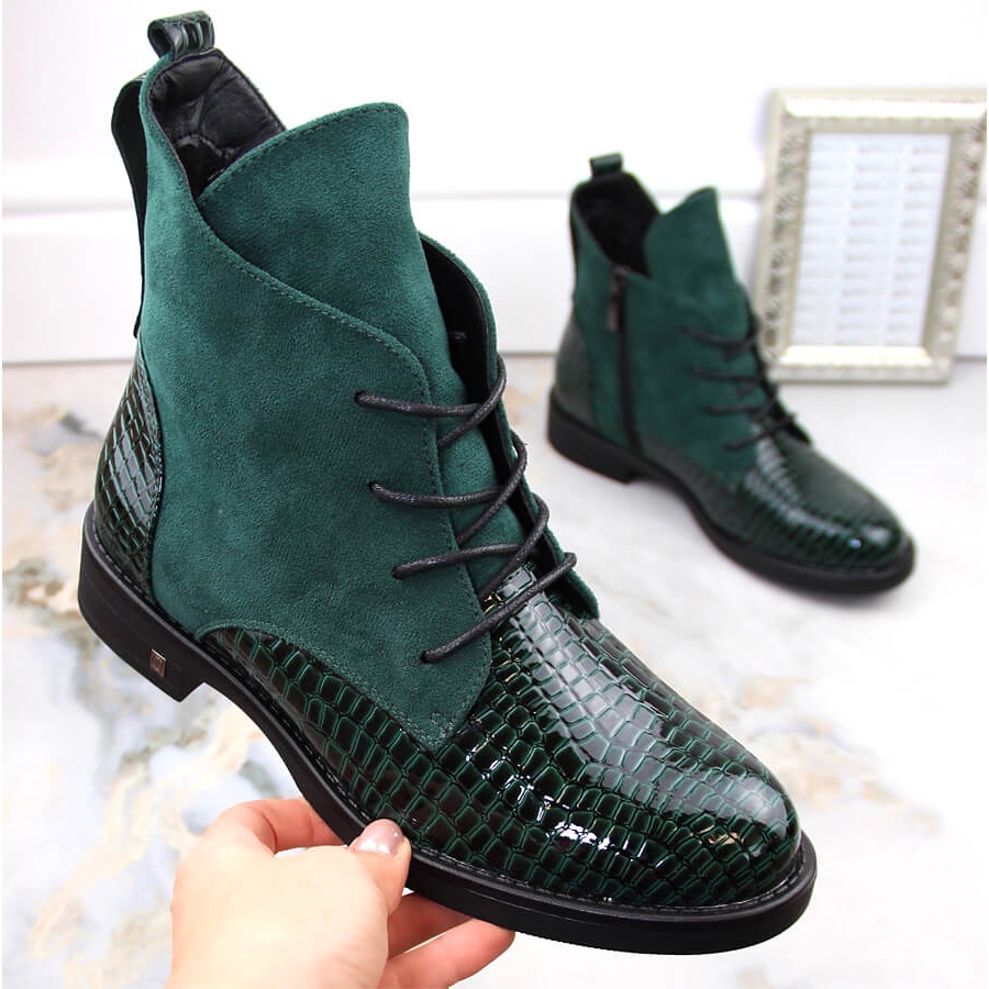 Detalhes: Botas femininas de salto baixo, isoladas, verdes Potocki SZ12080