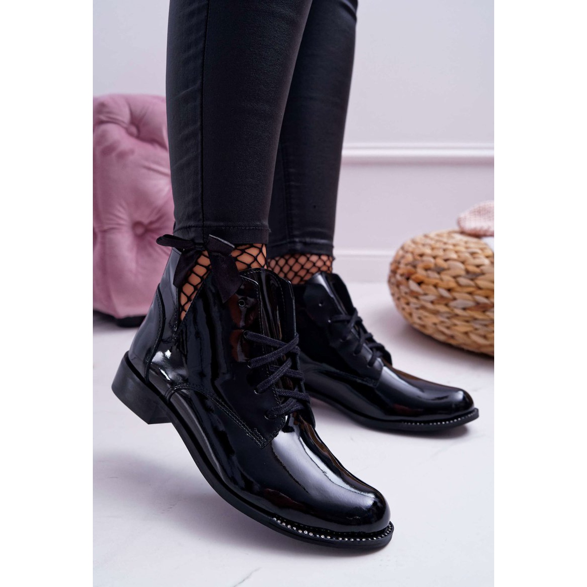 Botas femininas de salto plano preto envernizado Nicole 2420 são a escolha perfeita para mulheres que desejam combinar elegância com conforto. Estas elegantes botas com atacadores distinguem-se pela sua bela cor preta, que combina perfeitamente com qualquer estilo. Fabricados inteiramente em couro natural de alta qualidade, estão disponíveis nas versões envernizado e nobuck, o que permite escolher o modelo que mais se adapta ao seu estilo.
