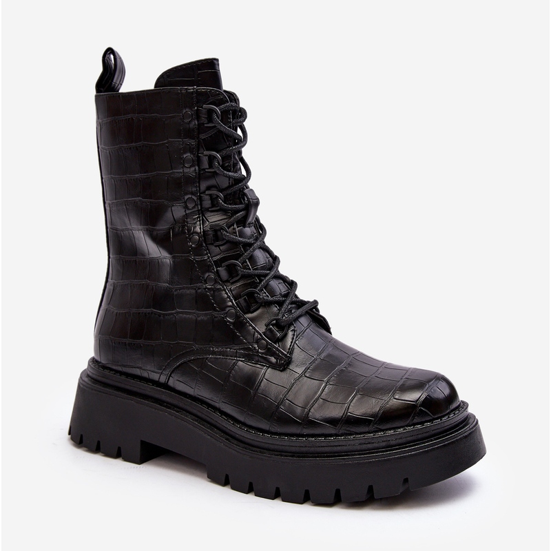 Detalhes: Botas femininas de trabalho com relevo decorativo Tarolia preta preto