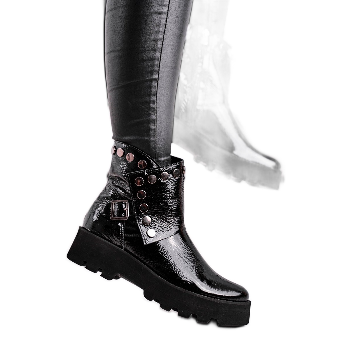 Detalhes: Exquisite Botas femininas em couro lacado preto requintado 1199