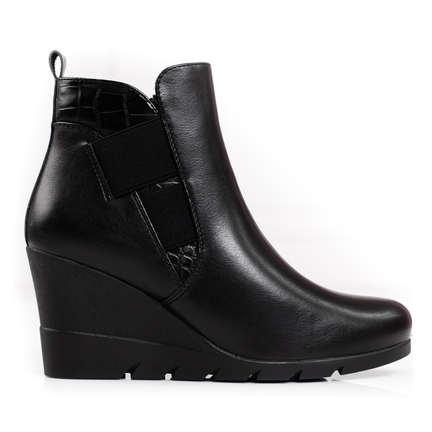 Detalhes: Botas femininas em um shelovet de cunha preto