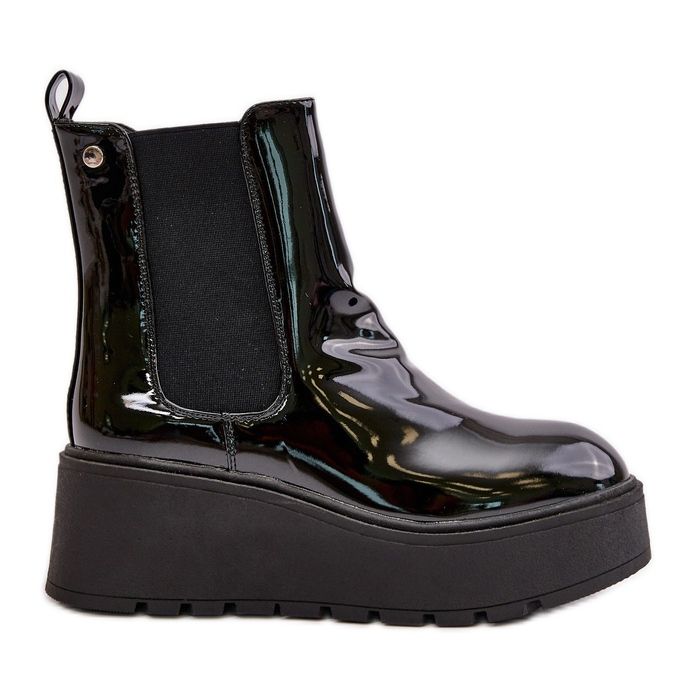 Detalhes: Botas femininas envernizadas com plataforma e cunha isoladas pretas Wloedia preto