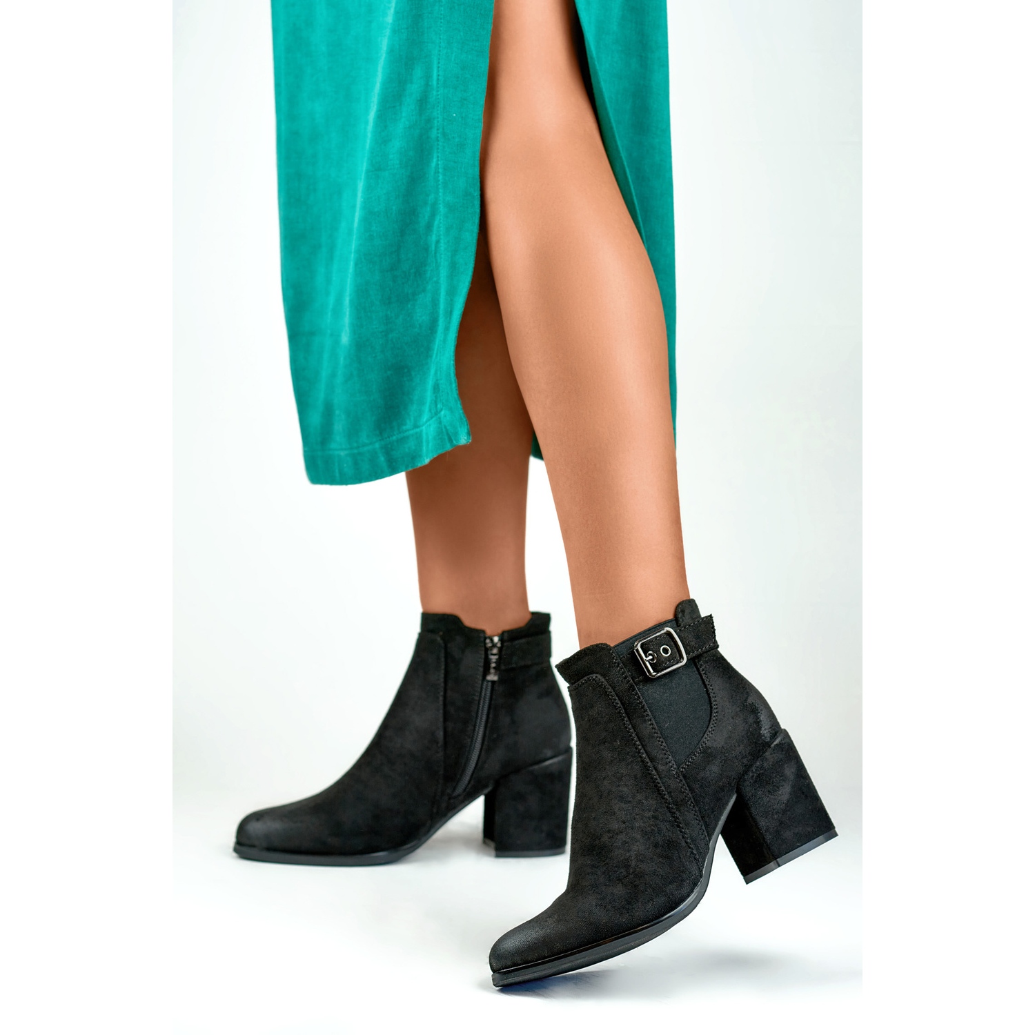 Descubra a elegância e o conforto com os sapatos isolados femininos 260034b-su em preto. Essas botas elegantes, feitas de couro ecológico de camurça, são uma ótima opção para dias mais frios. Graças ao zíper prático colocado no interior, colocar e decolar é extremamente simples.