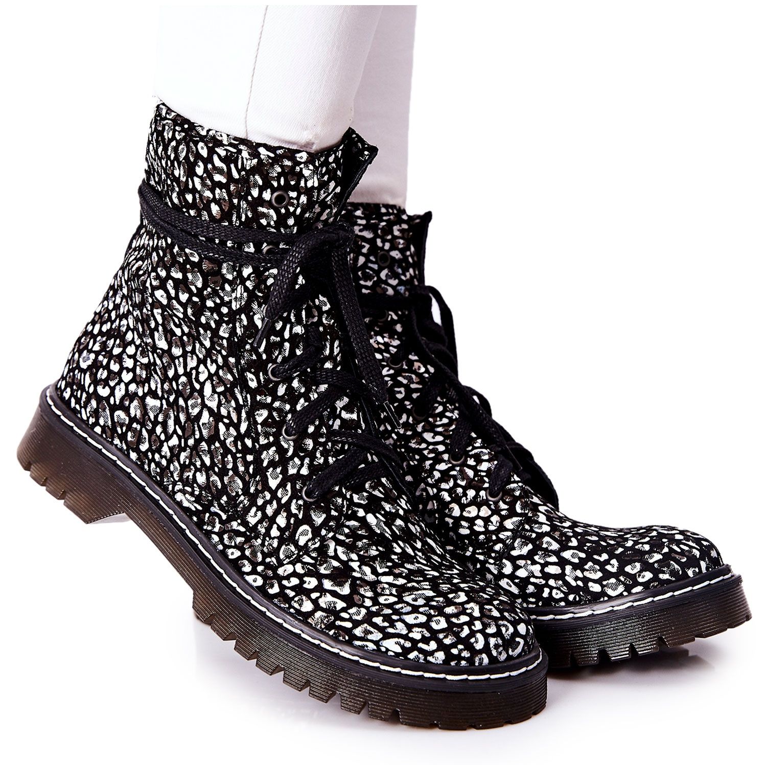 Detalhes: Botas femininas Glany Workers Maciejka Preto-Branco 01609-48