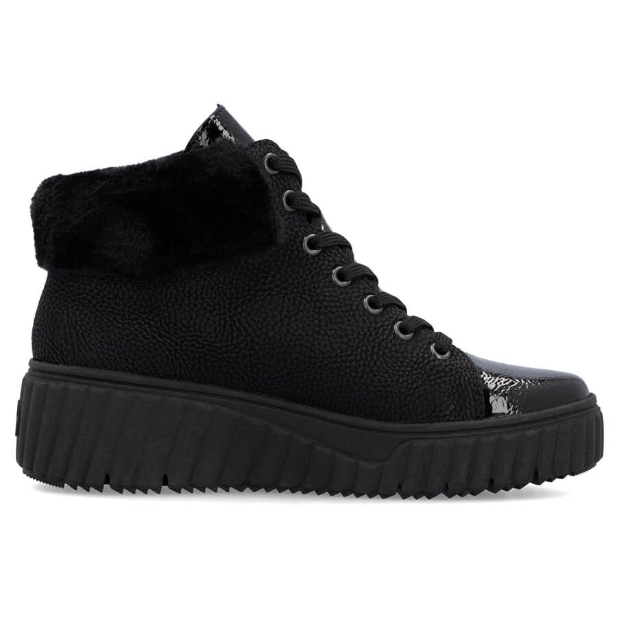 Descubra o extraordinário conforto e estilo com botas femininas à prova d'água na cunha Rieker N2505-00 em uma cor preta clássica. Esses sapatos inovadores do renomado fabricante alemão Rieker são uma solução ideal para mulheres que valorizam não apenas uma aparência elegante, mas também a funcionalidade.