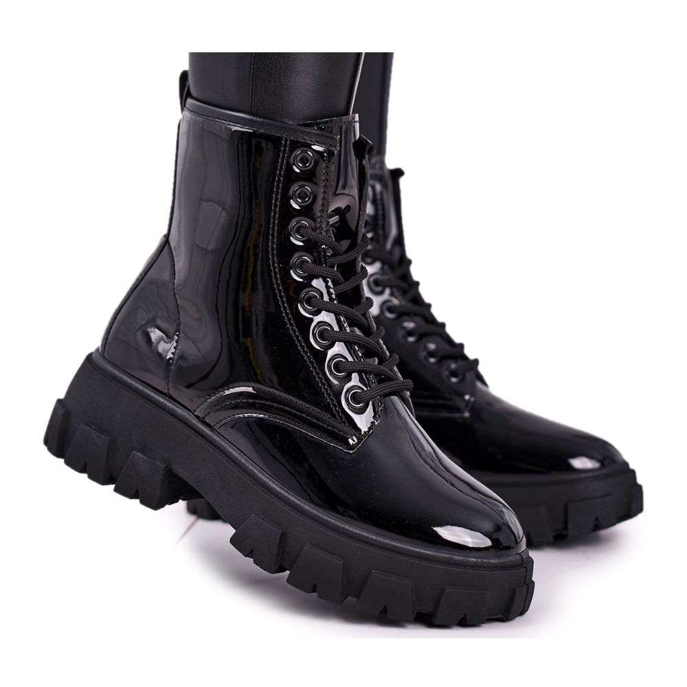 O design com zíper lateral e cadarço sólido facilita a colocação e o ajuste do calçado, o que o torna extremamente prático. O acabamento lacado preto confere-lhes um carácter elegante que combina perfeitamente com vários looks.